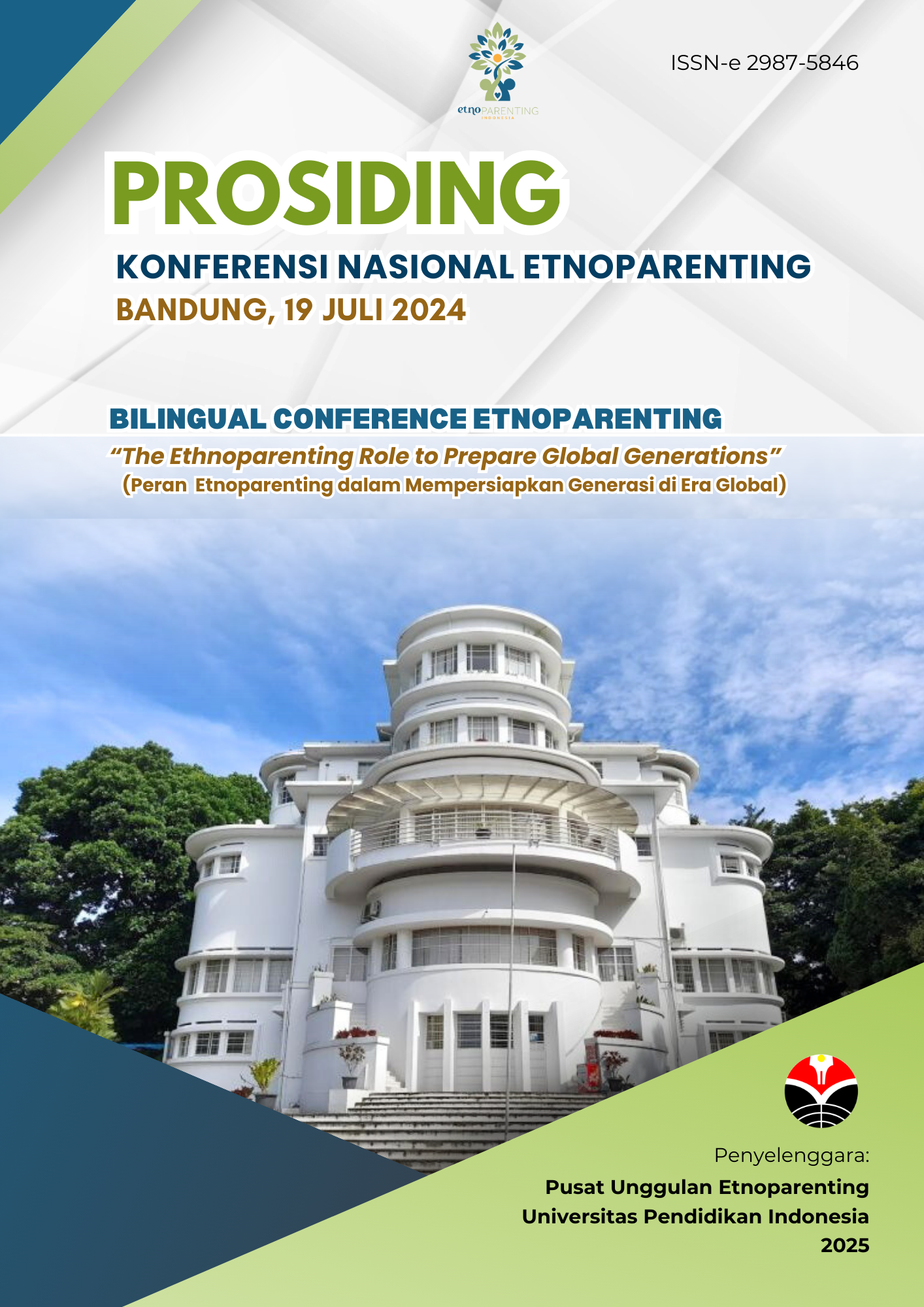 Prosiding Konferensi Nasional Etnoparenting adalah media publikasi akademik yang terbit dua tahunan dan dipublikasikan oleh kelompok bidang kajian dosen program studi Pendidikan Guru Pendidikan Anak Usia Dini (PGPAUD) Fakultas Ilmu Pendidikan, Universitas Pendidikan Indonesia.Konferensi Etnoparenting bertujuan untuk memfasilitasi para akademisi, mahasiswa, dosen, peneliti, praktisi atau pun pemerhati lainnya yang bergerak di bidang kajian etnoparenting, kearifan lokal, etnopedagogik atau pun isu ethno science lainnya. Melalui konferensi etnoparenting para peserta diharapkan dapat berbagi ide, gagasan, mempresentasikan hasil penelitian, pengalaman, dan atau berdiskusi terkait perkembangan mutakhir terkait etnoparenting. Prosiding Konferensi Nasional Etnoparenting ini akan mengumpulkan artikel-artikel yang telah dipresentasikan selama konferensi. Kami berharap website ini dapat memberikan kontribusi dalam mengembangkan pengetahuan dan keilmuan terkait etnoparenting di kalangan akademisi khususnya di lingkungan Universitas Pendidikan Indonesia.